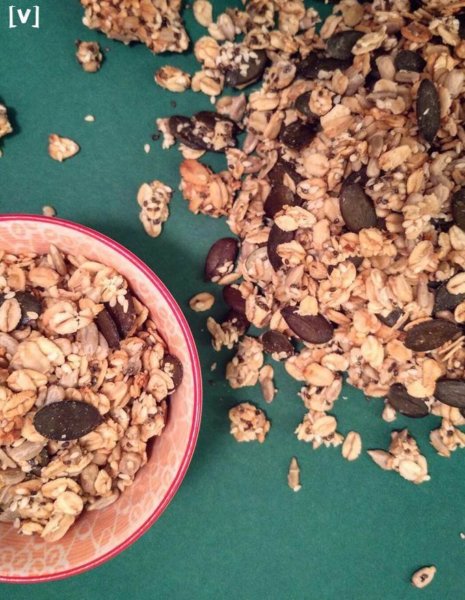 Ha kész és kihűlt, mehet egy dobozba [fém vagy csattos]. Tejjel, joghurttal, gyümölccsel vagy csak úgy önmagában is nagyon fincsi. 🙂