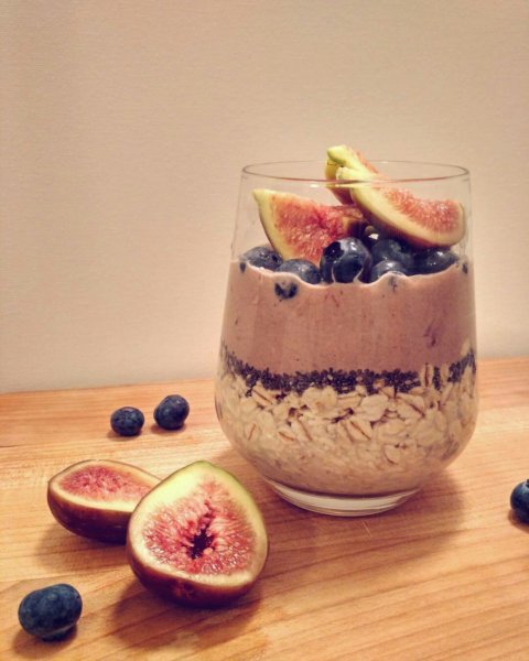 A rétegeket a képen látható módon tedd a pohárkába, egy éjszakát pihentesd hűtőben, reggel pedig fogyaszd el. :]