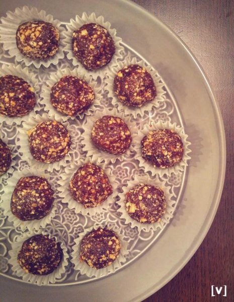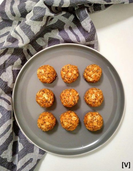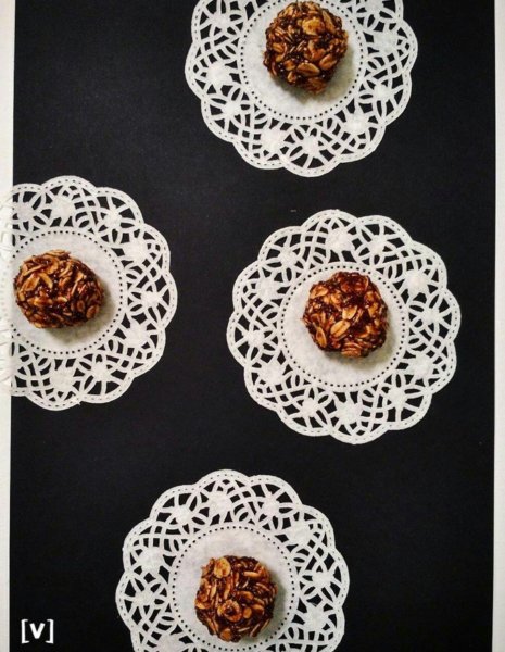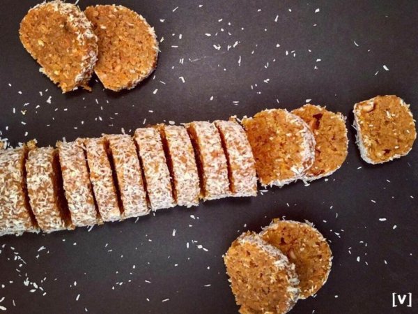 Előszőr a száraz, majd a ragacsos hozzávalókat dobd be egy fasza késes robotgépbe – ha nem tapadna össze, akkor kézzel segíts rá, formázz golyókat, majd forgasd meg tökmagos kókuszreszelékben.